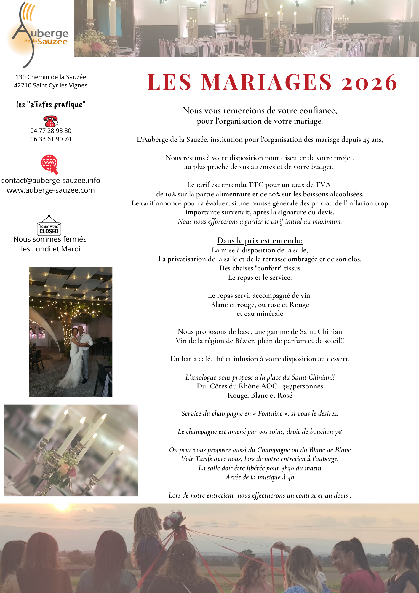 Nous sommes à votre service pour l'organisation de votre mariage